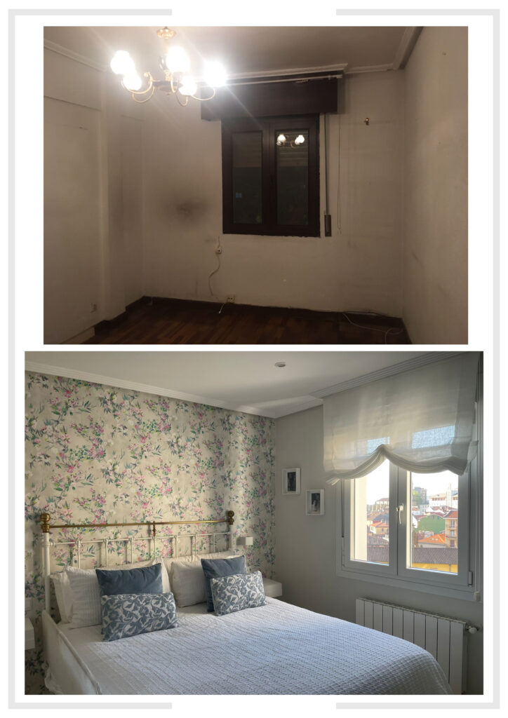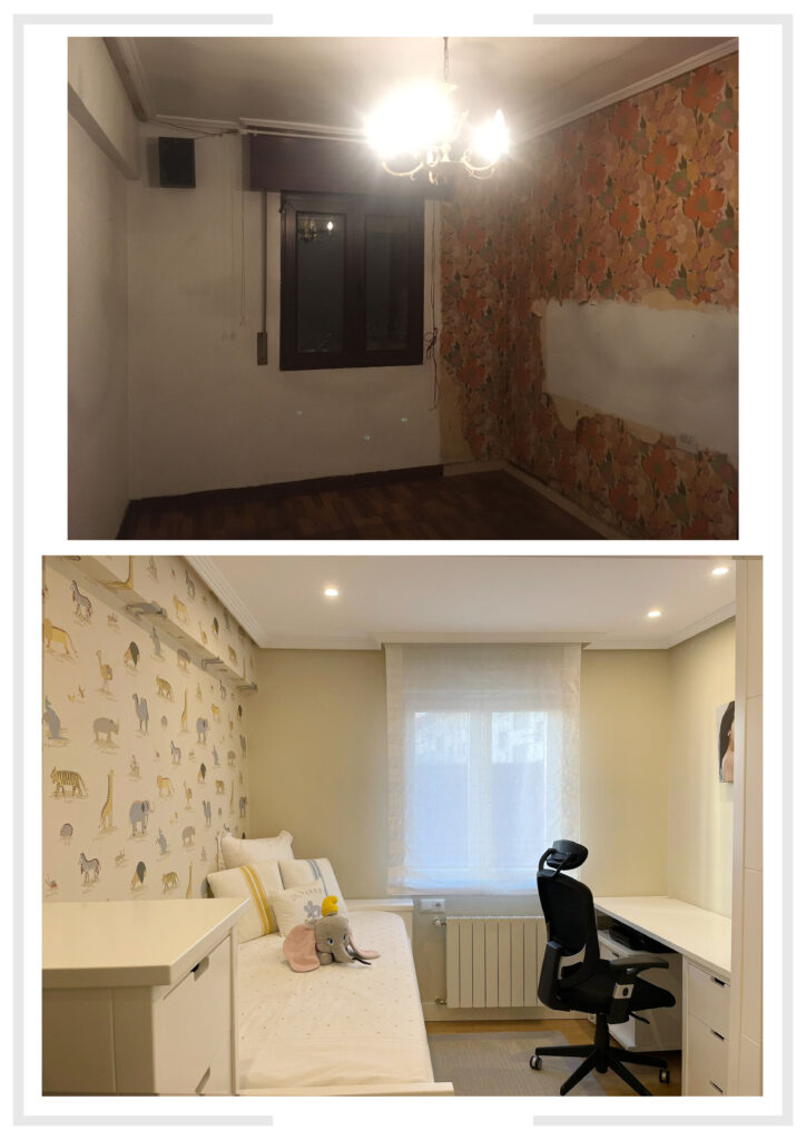 Tras terminar la obra, los dos dormitorios quedan amueblados a las necesidades actuales, una habitación con zona de juegos para el pequeño de la casa y la habitación principal adaptada con una cuna.